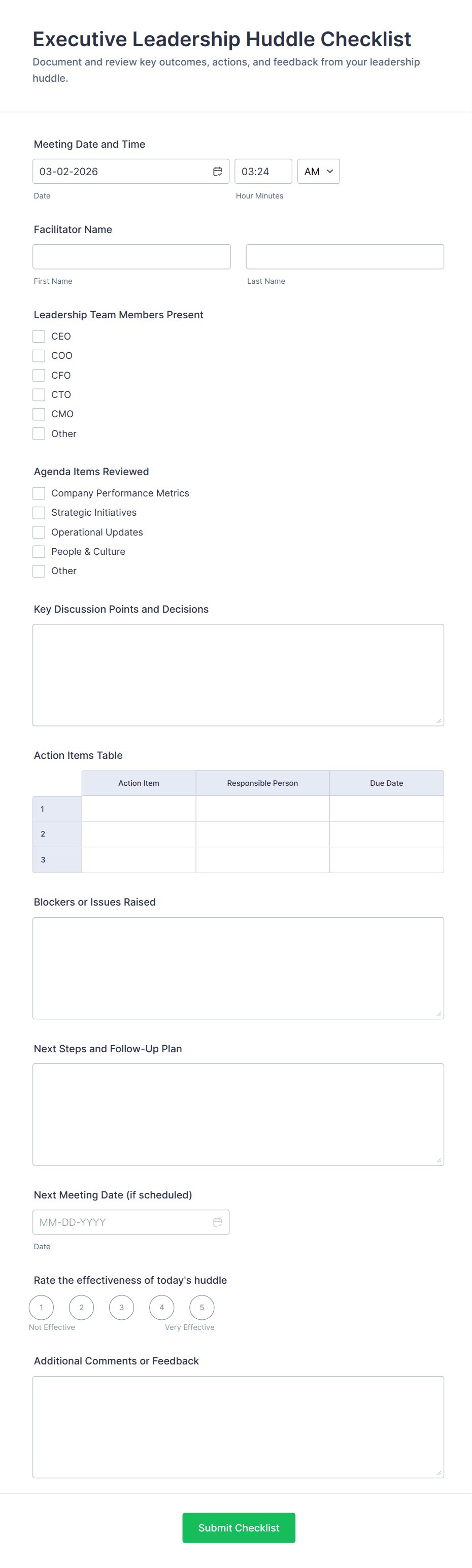 Checklist forms usually contain a list of tasks or items, checkboxes for completion, and may include fields for names, dates, comments, signatures, or supporting documentation.