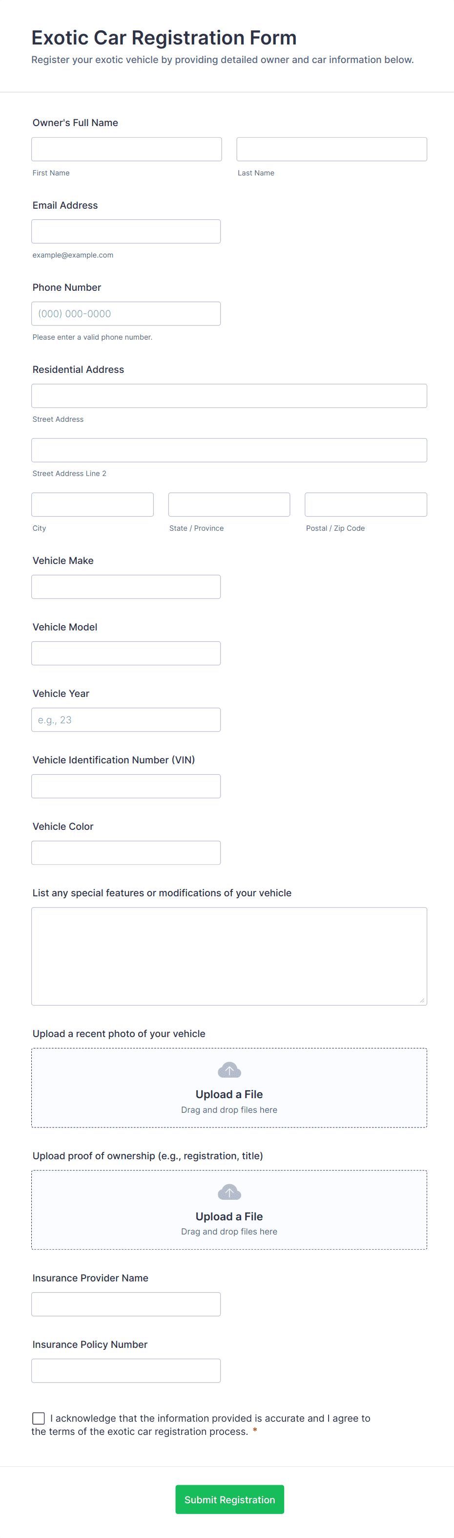 A vehicle registration form is the official form that vehicle owners must fill out before registering a motor vehicle. No coding!