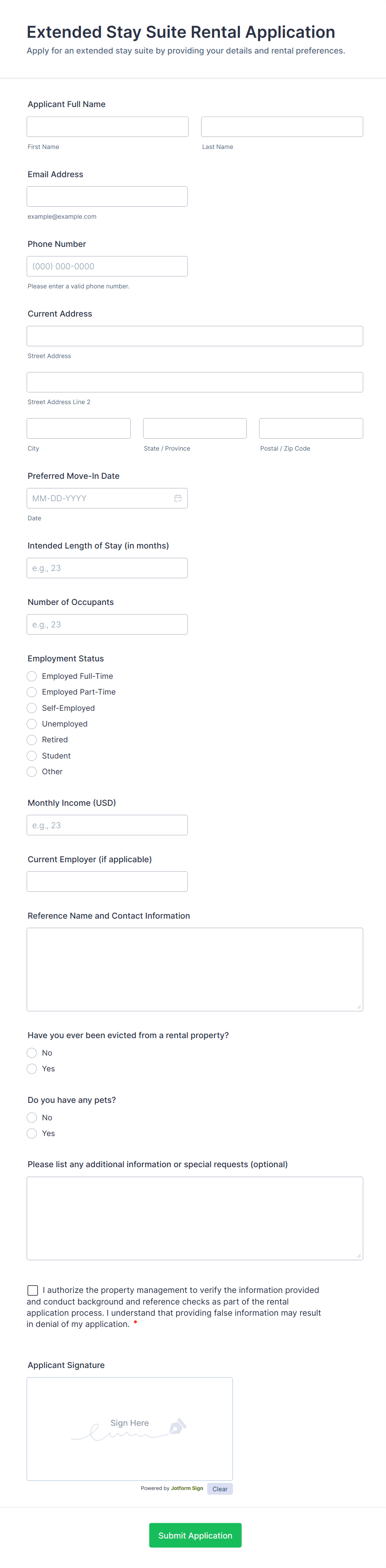 Online Rental Application Form