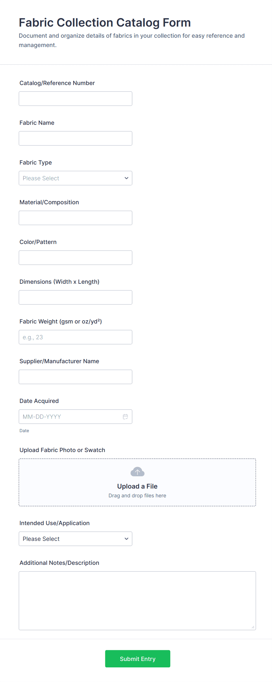 File Upload Forms are specialized online forms designed to collect files, documents, images, or other digital assets directly from users. These forms are commonly used in scenarios where individuals or organizations need to gather supporting materials, such as job applications with resumes, event registrations with ID proofs, homework submissions, design requests, or client onboarding documents. The versatility of File Upload Forms makes them essential for businesses, educational institutions, creative agencies, HR departments, and service providers who require a secure and efficient way to receive files from clients, students, or collaborators.