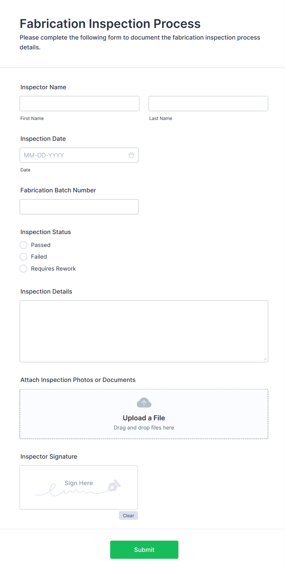 Yes, modern inspection forms—especially digital ones—can include file upload fields for photos and signature fields for verification and accountability.