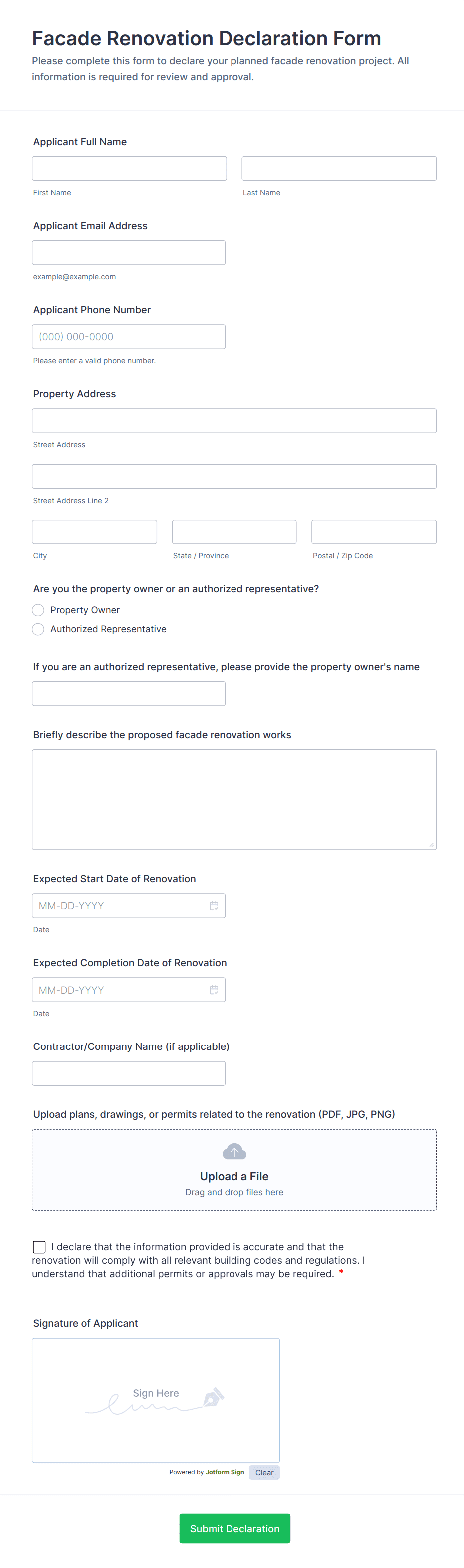With Jotform, users can easily create, customize, and manage declaration forms online without any coding knowledge. Jotform’s intuitive drag-and-drop Form Builder, along with a vast library of ready-to-use templates, allows you to quickly design forms tailored to your needs. You can add custom fields, integrate e-signature widgets, and set up conditional logic to ensure only relevant questions are displayed. Submissions are automatically stored and organized in Jotform Tables, making it simple to track responses, generate reports, and maintain compliance. Jotform’s secure platform also supports integrations with payment gateways and other business tools, streamlining your workflow from data collection to processing.