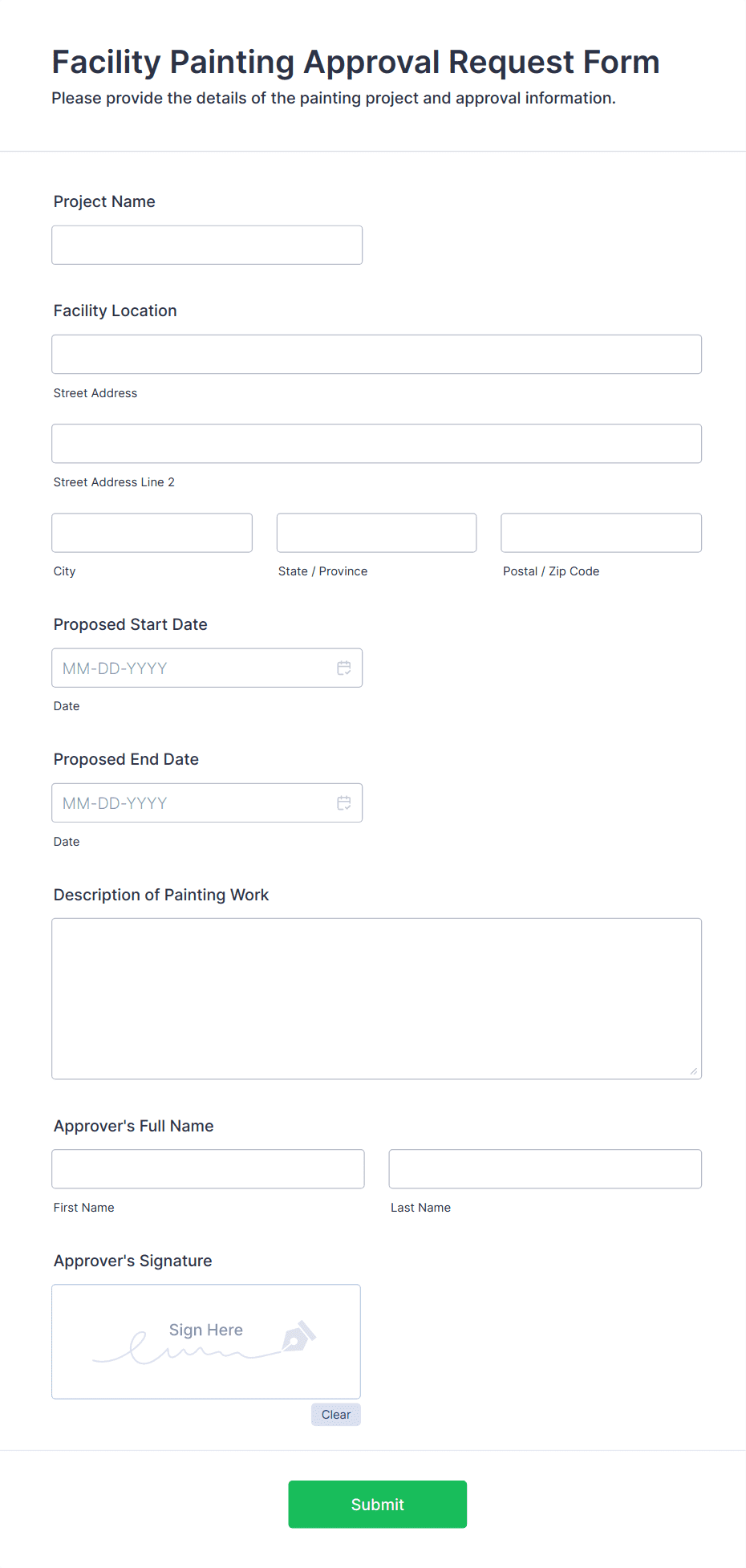 Approval Form Templates are specialized online forms designed to streamline and automate the process of requesting, reviewing, and granting approvals for a wide range of business and organizational needs. These templates are commonly used for leave requests, purchase orders, expense reimbursements, project proposals, document sign-offs, and more. By providing a structured workflow, approval forms ensure that requests are routed to the appropriate decision-makers, tracked efficiently, and documented for compliance and transparency. Whether you’re managing internal HR processes, procurement, or project management, approval forms help standardize and accelerate decision-making.