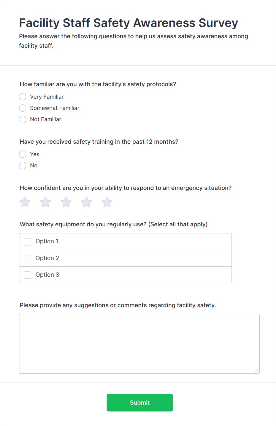 • For engagement surveys, include questions about job satisfaction, leadership, and work environment.