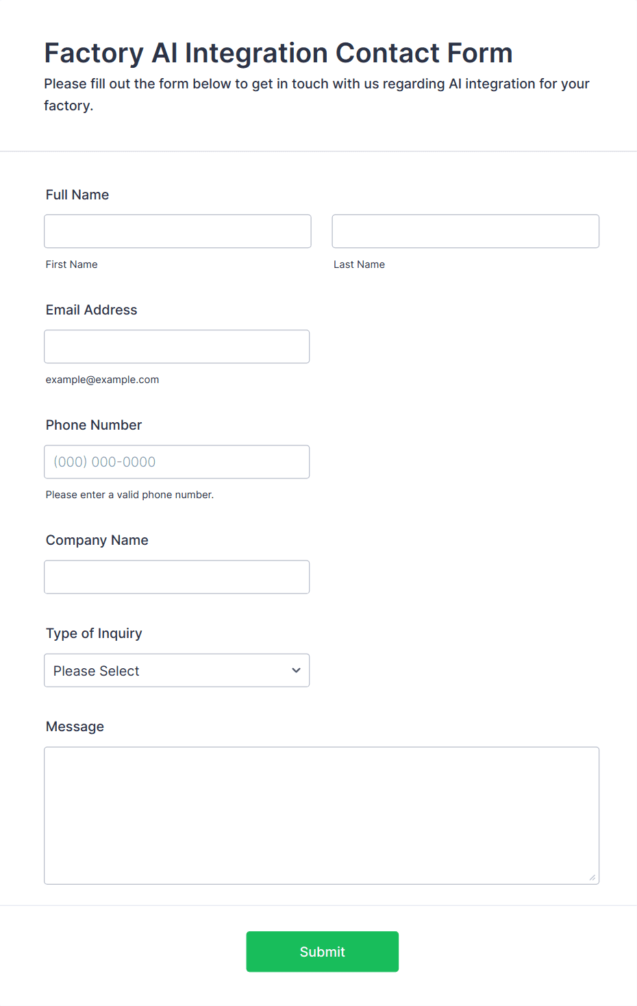 Manufacturing Supply Chain Form