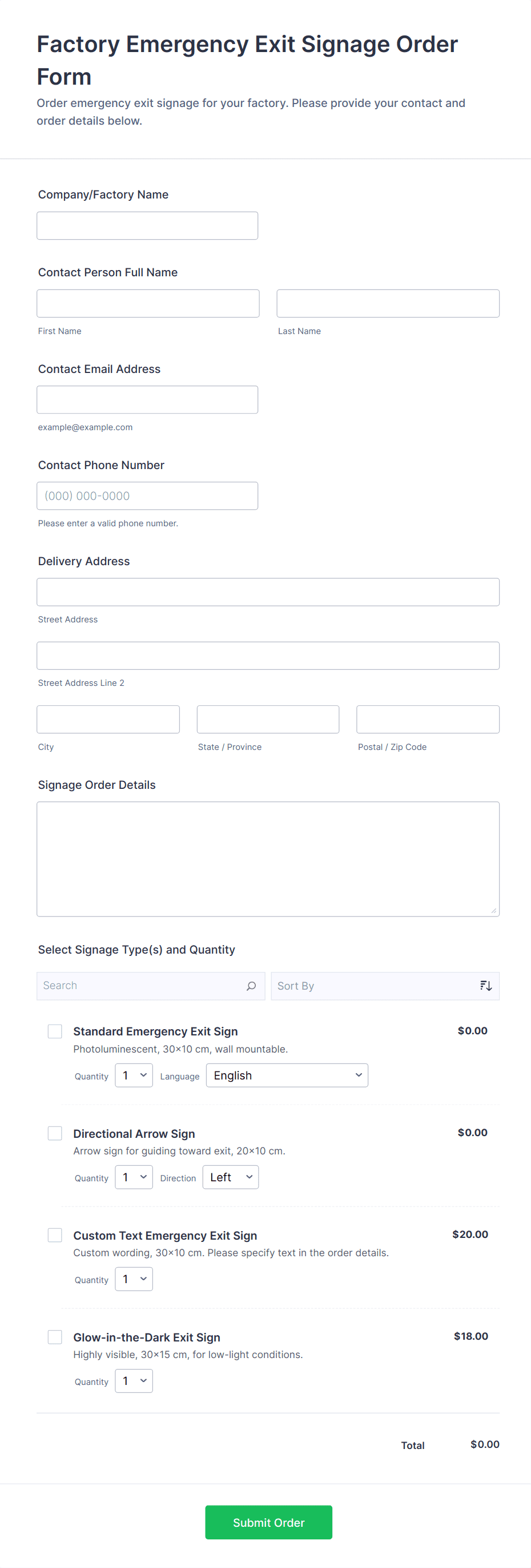 Manufacturing forms are online forms used to collect manufacturing information like product and supply orders, inventory reports, feedback, applications, and more. With these ready-made Manufacturing Forms from Jotform, you can save time and paper by switching from messy paper forms to efficient only forms you can fill out on any device.