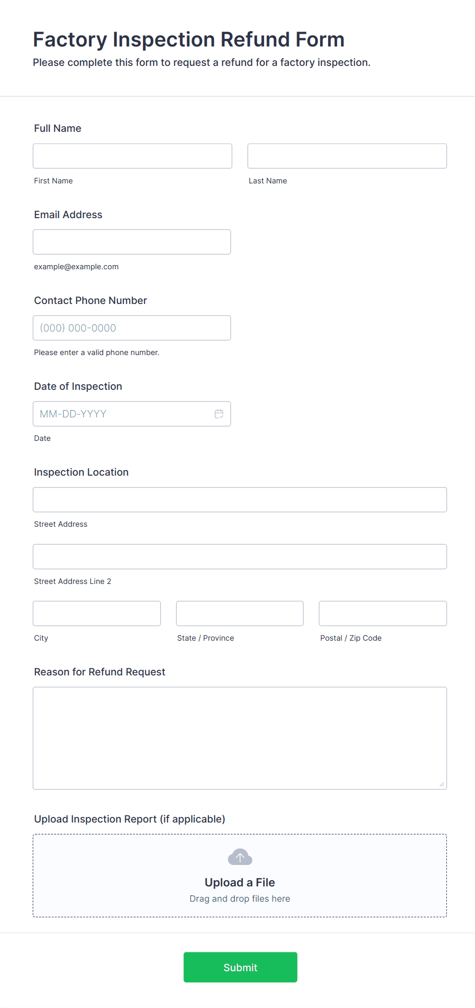 Refund Form Templates are specialized online forms designed to streamline the process of requesting, processing, and managing refunds across a variety of industries. Whether you’re running an e-commerce store, a service-based business, an event organization, or a school, refund forms help you collect all the necessary information from customers or clients who wish to request a refund. These templates typically include fields for order details, reasons for the refund, payment information, and supporting documentation, ensuring that refund requests are handled efficiently and transparently. Use cases range from product returns and event ticket refunds to tuition reimbursements and subscription cancellations.