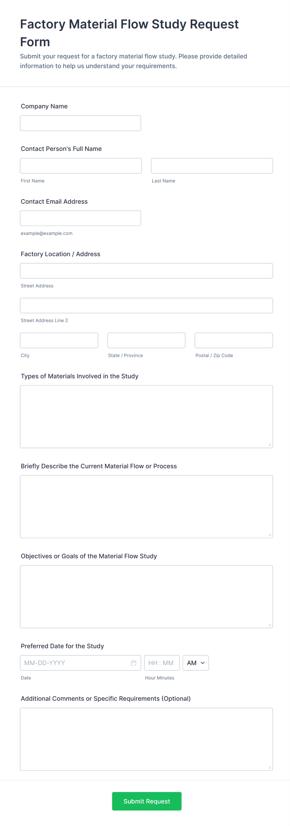 Manufacturing Supply Chain Form