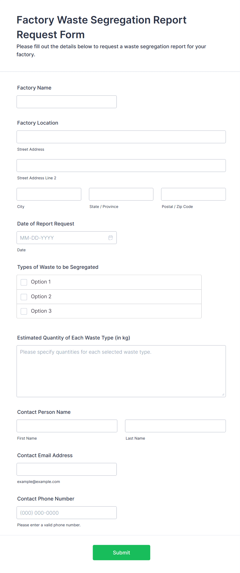A Waste Disposal Form Template helps companies record, track, and manage waste disposal requests efficiently with customizable fields for organized waste management.