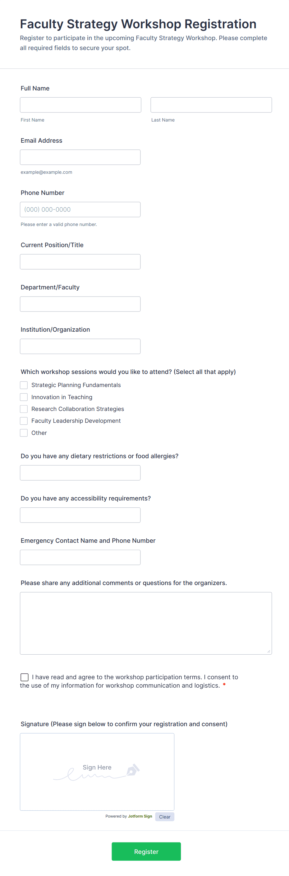 By following these steps, you can create a professional, user-friendly Workshop Registration Form that streamlines the sign-up process, reduces administrative work, and enhances the overall experience for your participants.