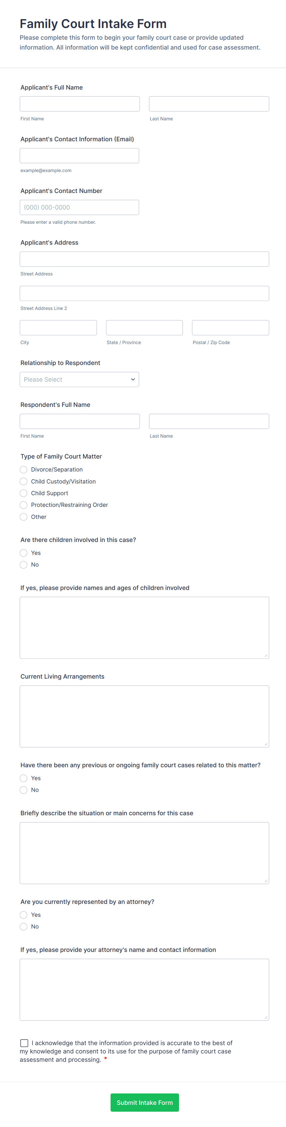 Optimize your professional services using web forms as your intake form to receive legal concerns and close future agreements with web-based walk-ins. Use this Legal Client Intake Form template and never miss a client anymore.