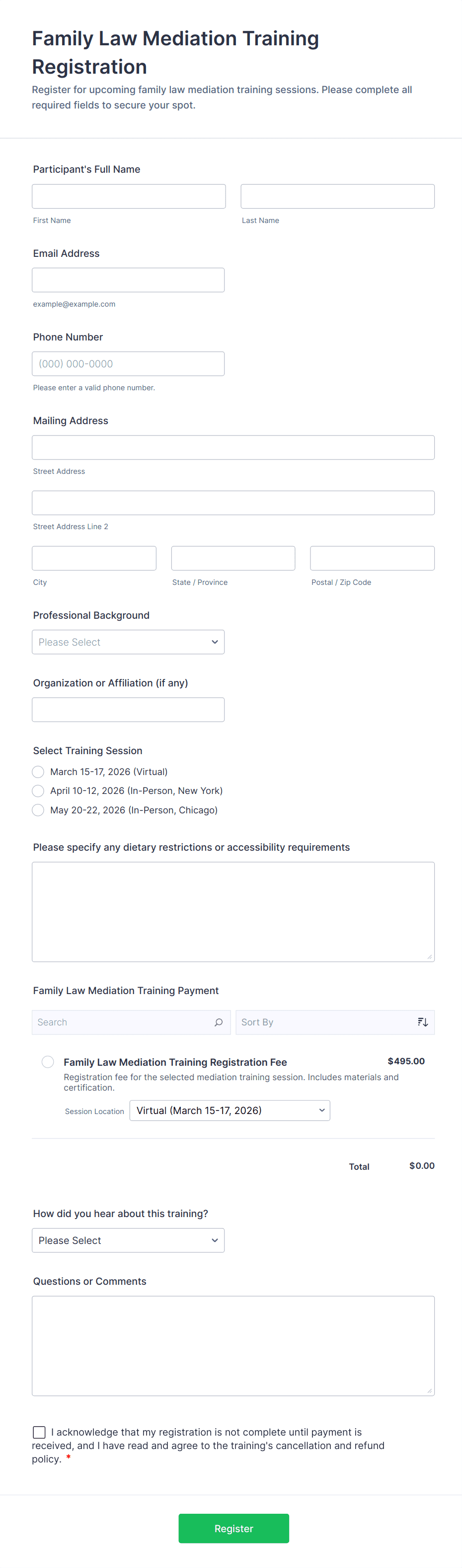 • Include event-specific fields like session selection, meal preferences, or T-shirt sizes.