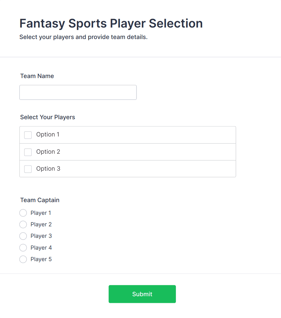 A sports form template is a pre-designed online form used to collect and manage information related to sports activities, such as registrations, waivers, event sign-ups, and feedback.