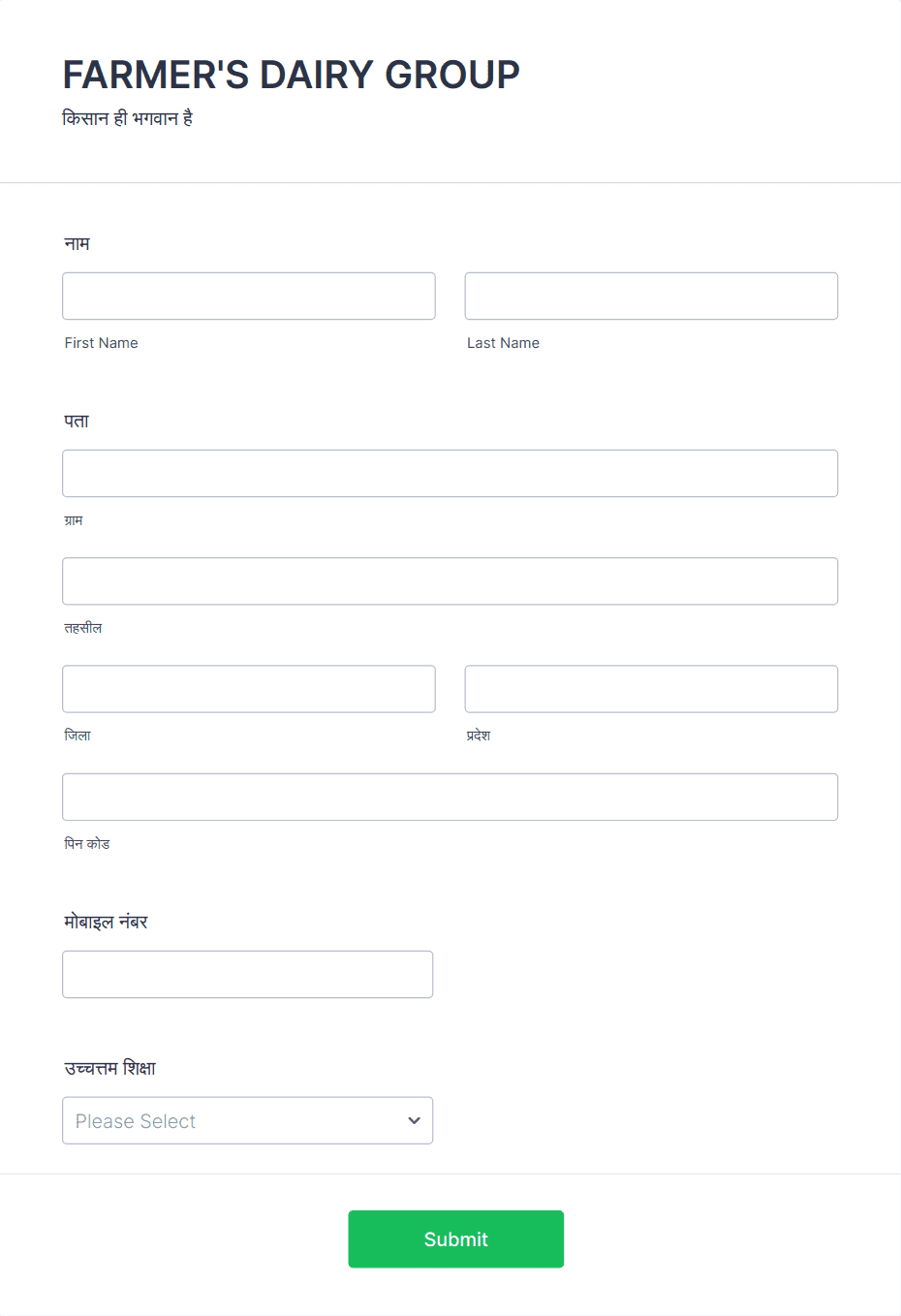 University Admission Form