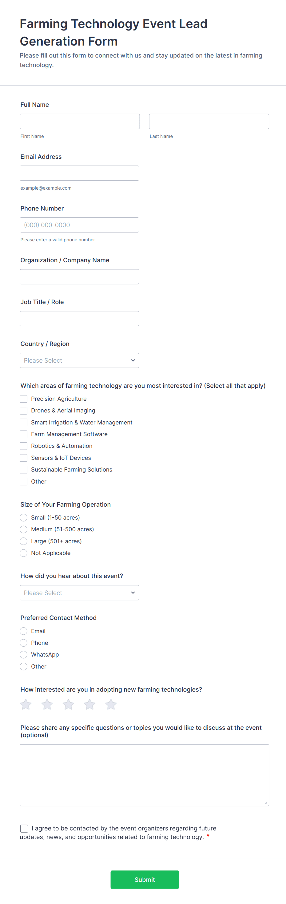 • Event registration forms for webinars, workshops, or conferences.