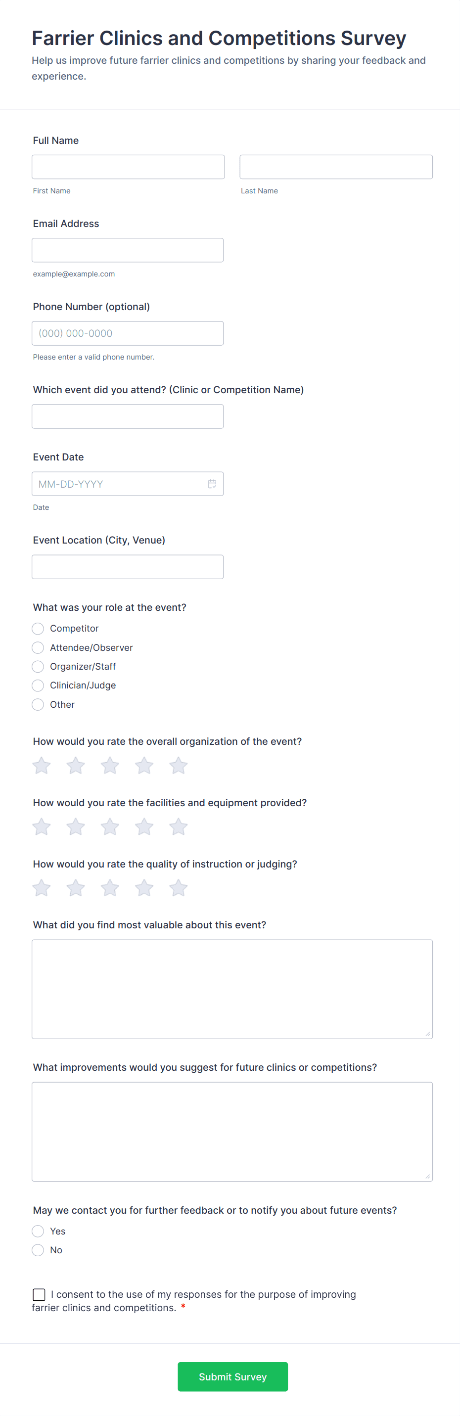• Optional contact information fields if you wish to follow up with respondents