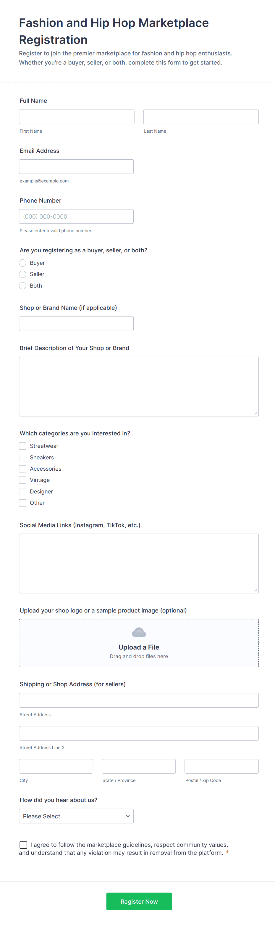 An e-commerce form template is a pre-designed online form that helps businesses collect orders, payments, and customer information for products or services sold online.