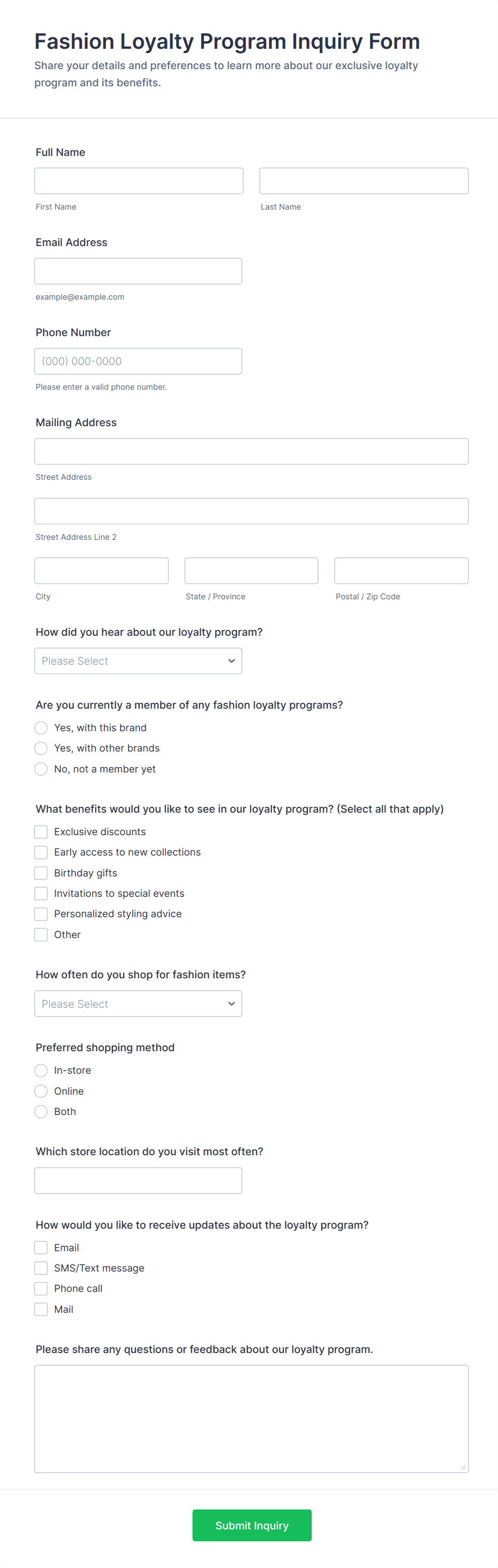 3. What information should be included in an inquiry form?