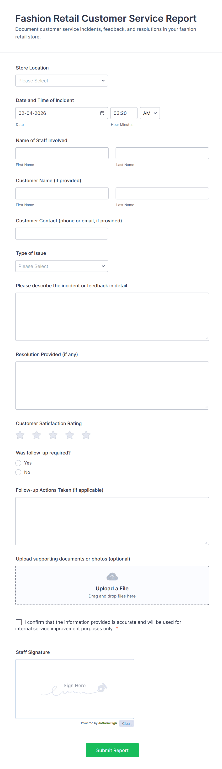 Customer Review Form