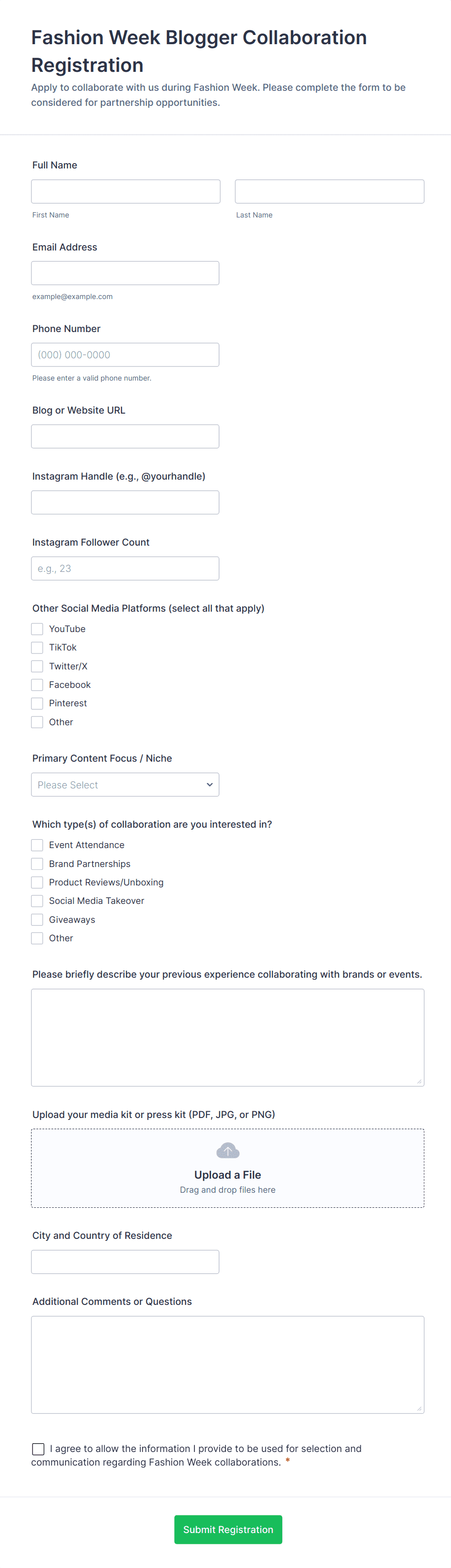 An Influencer Collaboration Form is a form template designed to gather all necessary information from influencers to ensure a successful partnership.