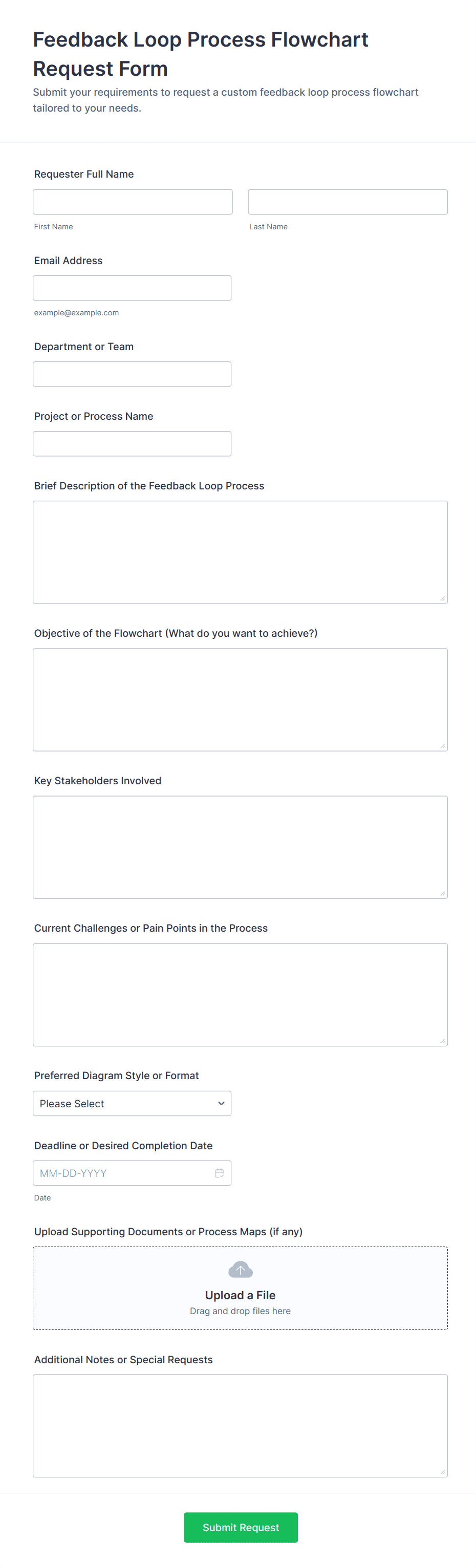 • Use conditional logic to show or hide fields based on the request type or user responses.