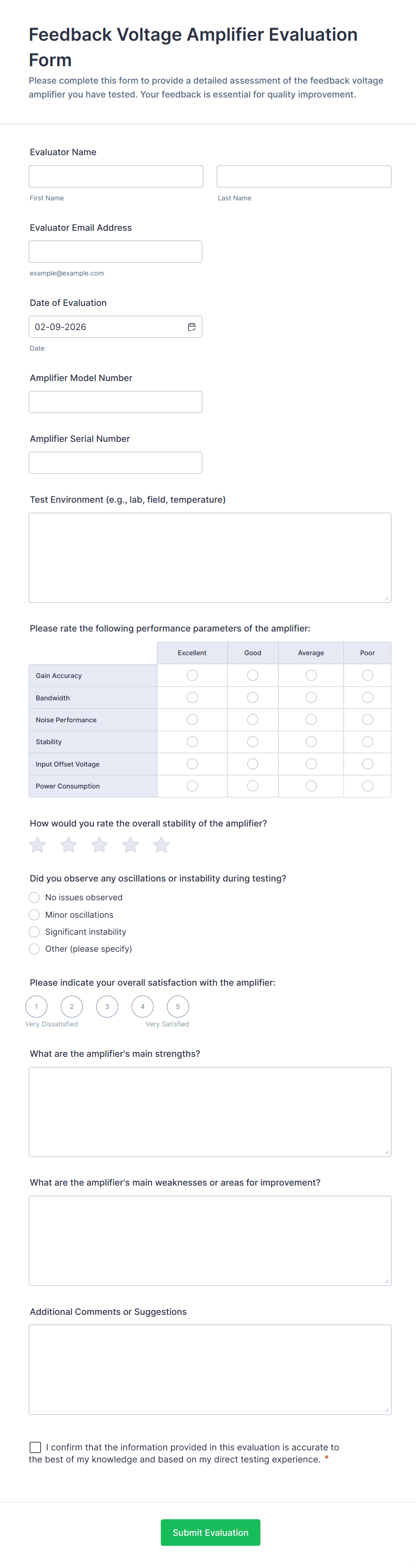 An evaluation form is a structured document or online tool used to collect feedback, assess performance, or measure satisfaction in various settings such as workplaces, schools, events, or customer interactions.