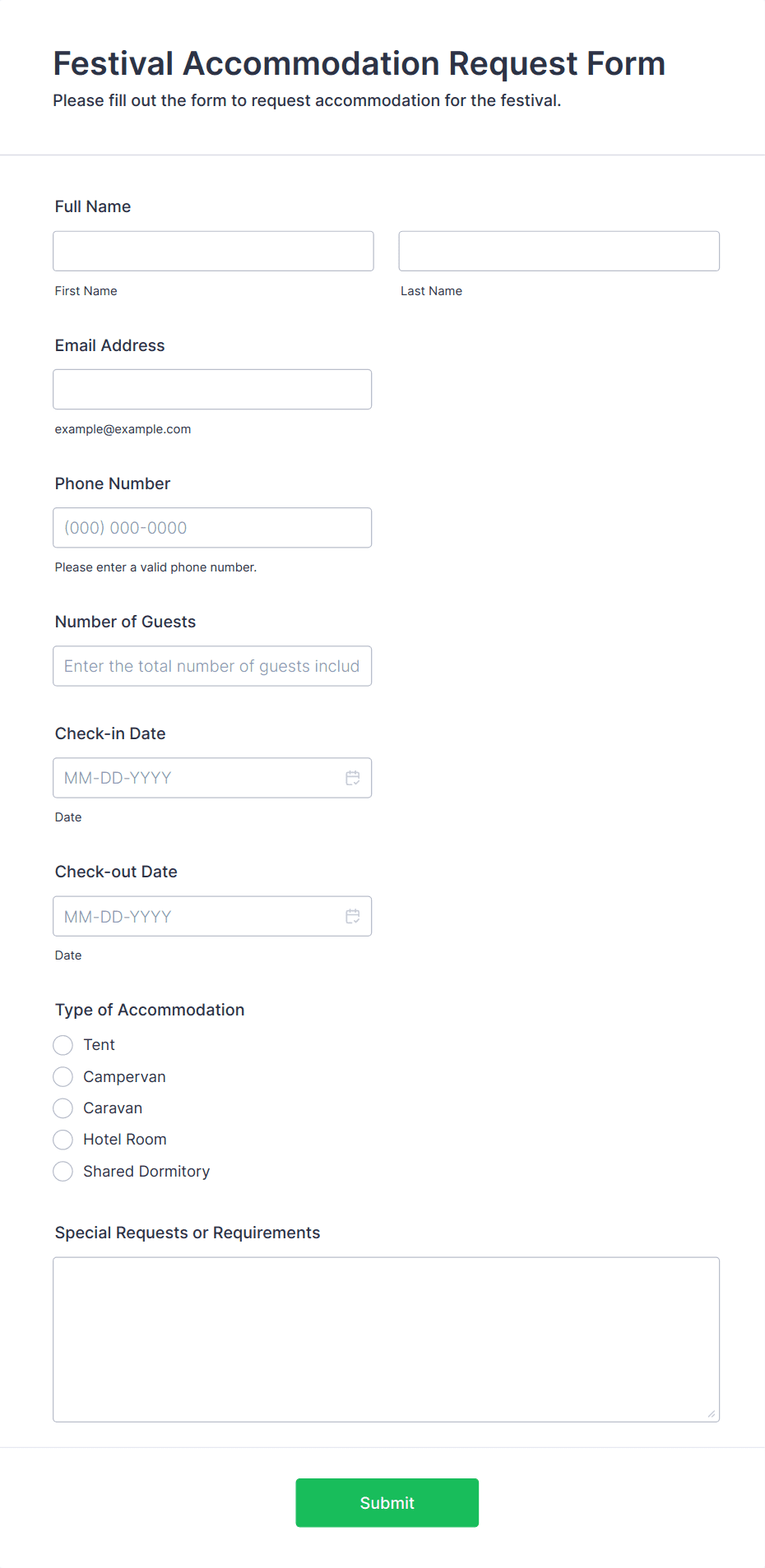 Conveniently receive guest reservations for your hotel or apartment online. Use this Hotel Guest Registration Form Template, embed it on a website or share it via social media and accept reservations 24/7 hassle free!