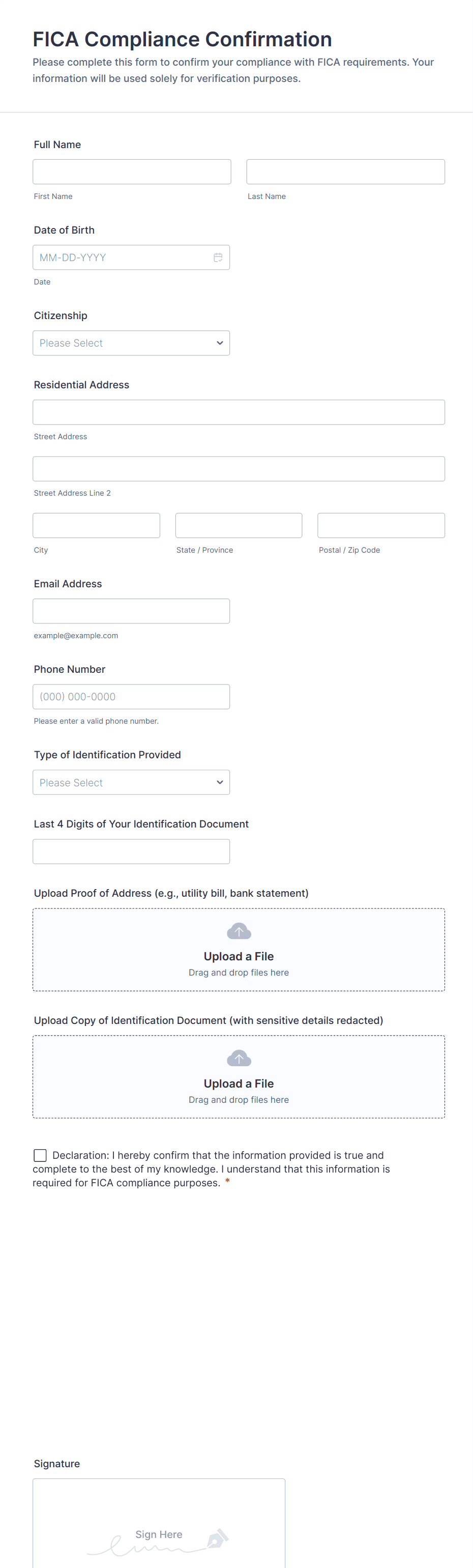 - Address Verification: Requests utility bills or lease agreements as file uploads.