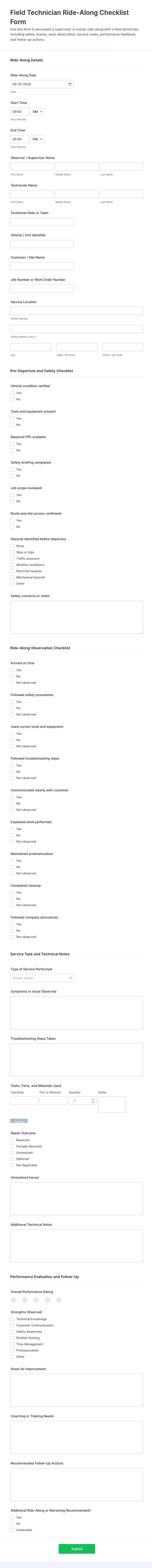 • For more complex checklists, add dropdowns, file upload fields (for attaching evidence or reports), or signature fields (for verification).