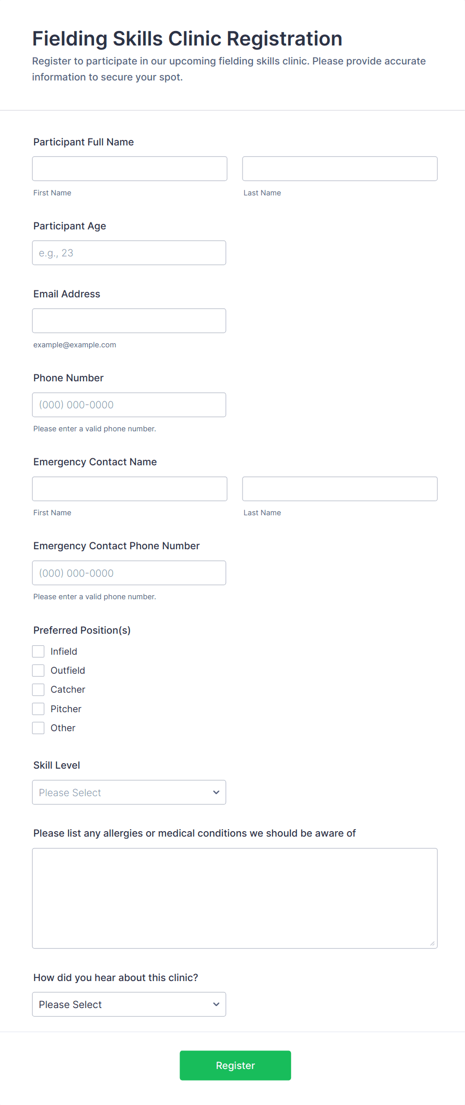 How to Create a Sports Registration Form