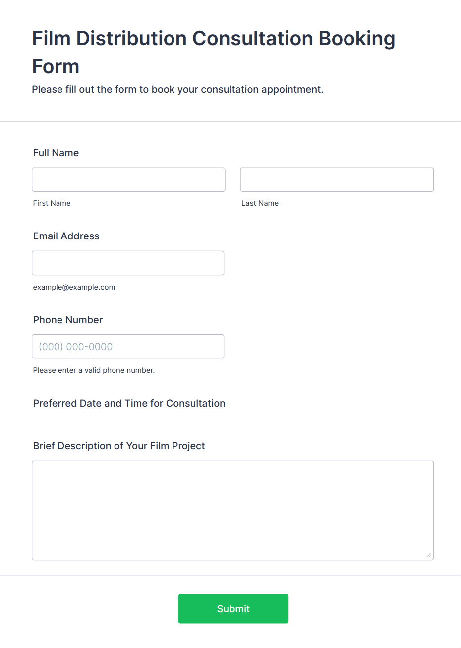 Entertainment Forms are specialized online forms designed to streamline processes within the entertainment industry, including event planning, talent management, audience engagement, and more. These forms can be used for a variety of purposes such as event registrations, ticket bookings, talent auditions, feedback collection, contest entries, and guest list management. Whether you’re organizing a concert, managing a film festival, running a comedy show, or hosting a virtual gaming tournament, Entertainment Forms help you efficiently gather and manage information from participants, attendees, and staff.