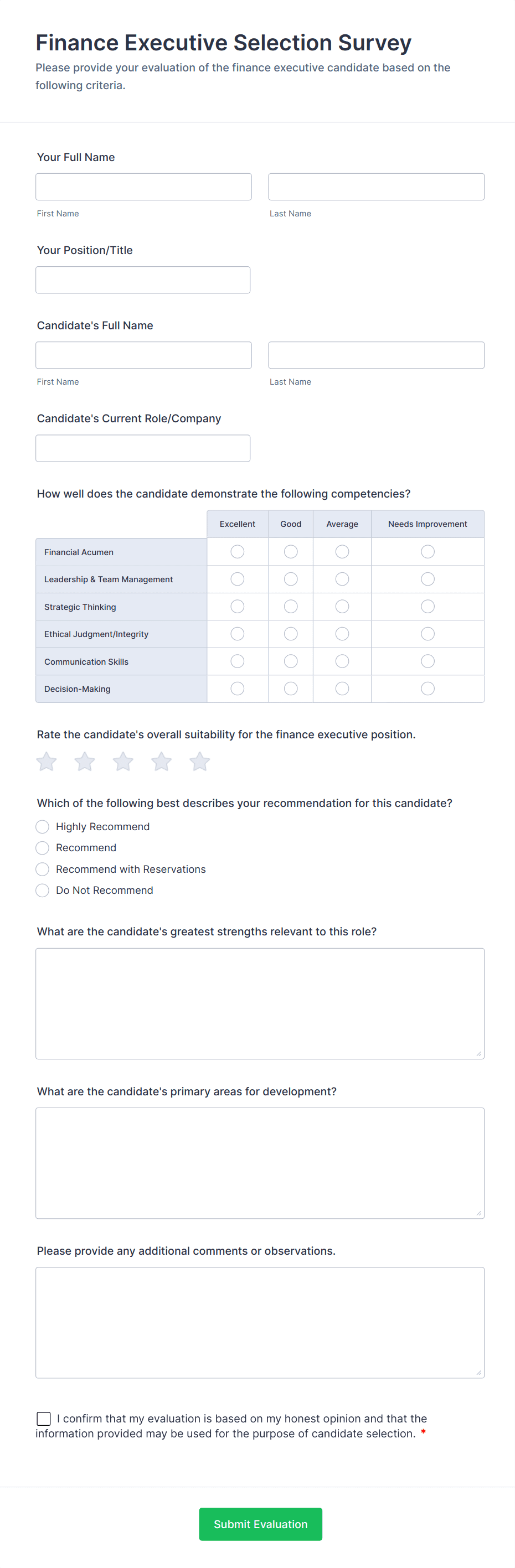 An Employee Performance Evaluation Form is a form template designed to track individual performance, monitor employee progress, and provide detailed feedback to employees.