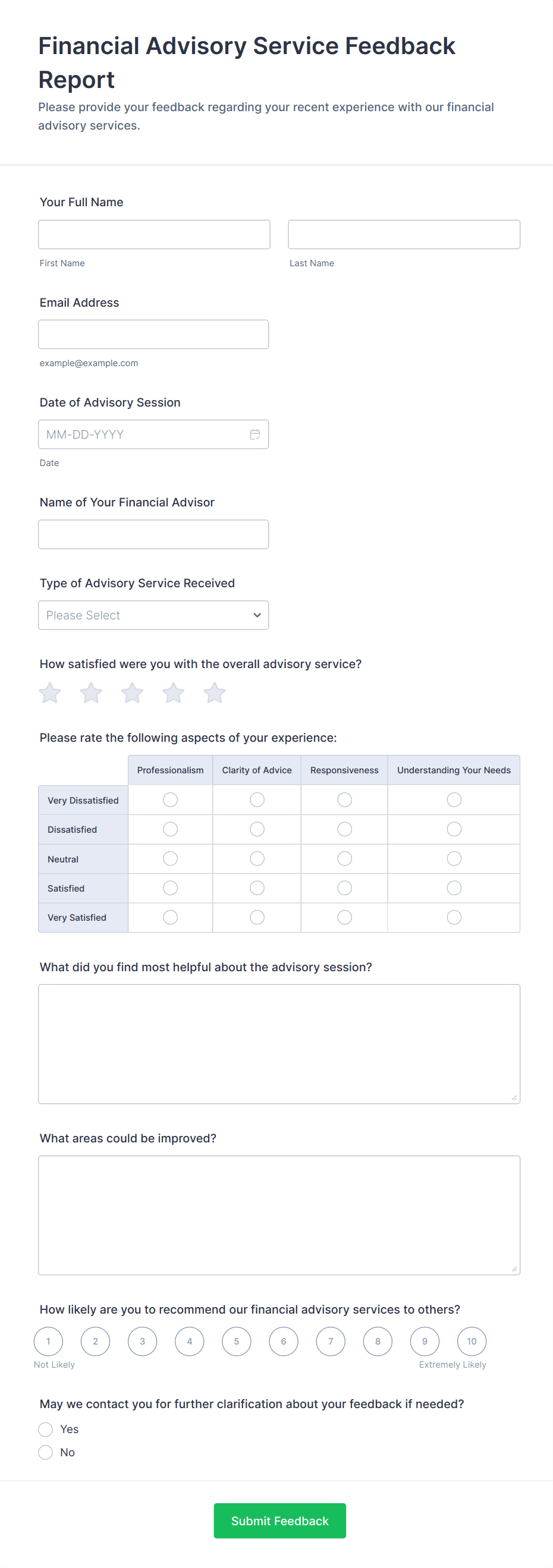 A financial advisor form is a digital document used by financial professionals to collect, organize, and manage client information, risk profiles, investment preferences, and compliance data.