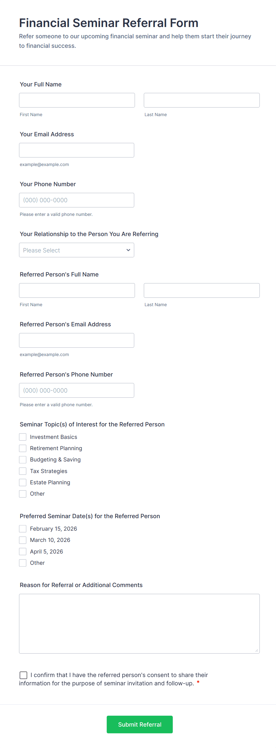 • For healthcare or sensitive referrals, include fields for privacy agreements or HIPAA compliance.