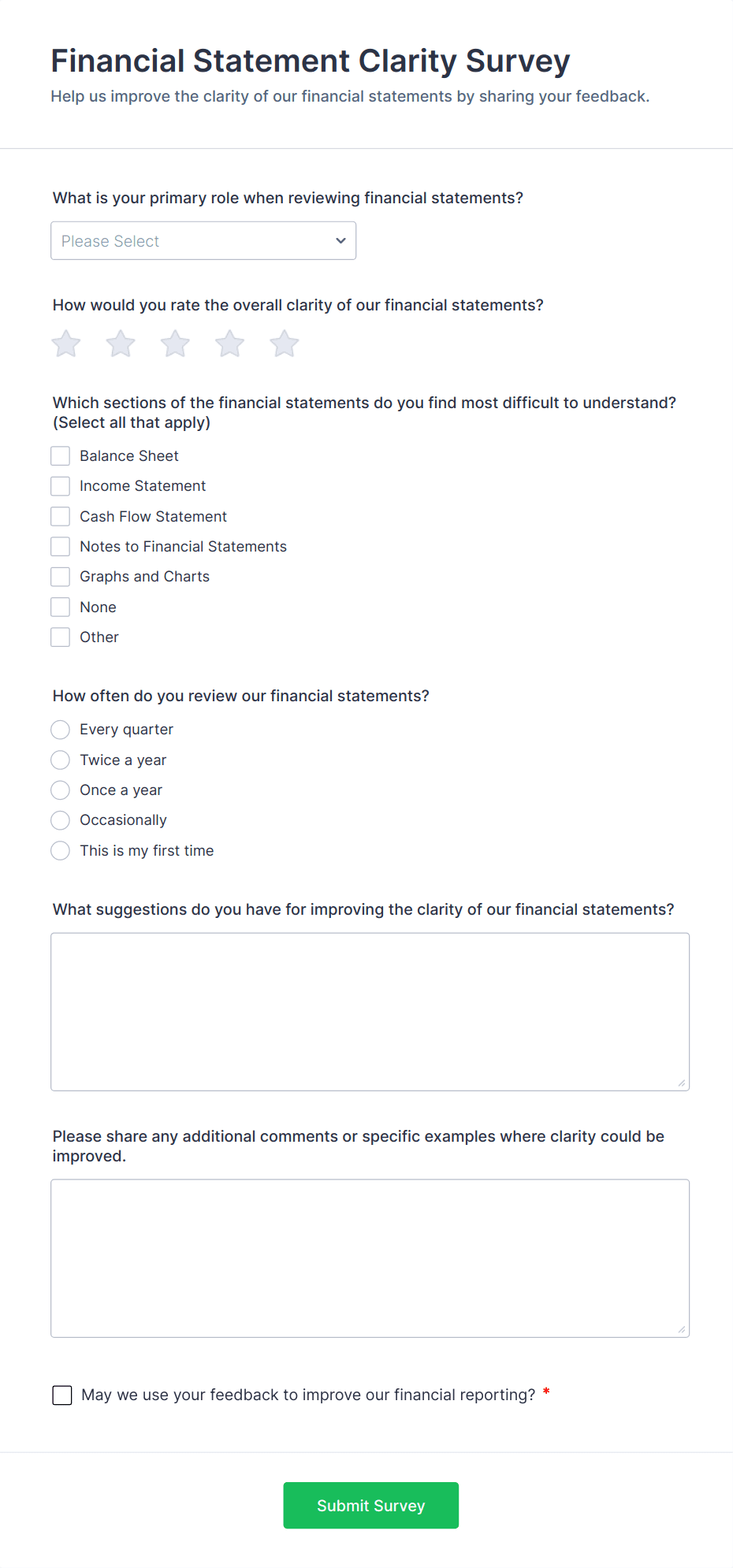• Financial Reports: Require fields for numerical data, dates, and categories.