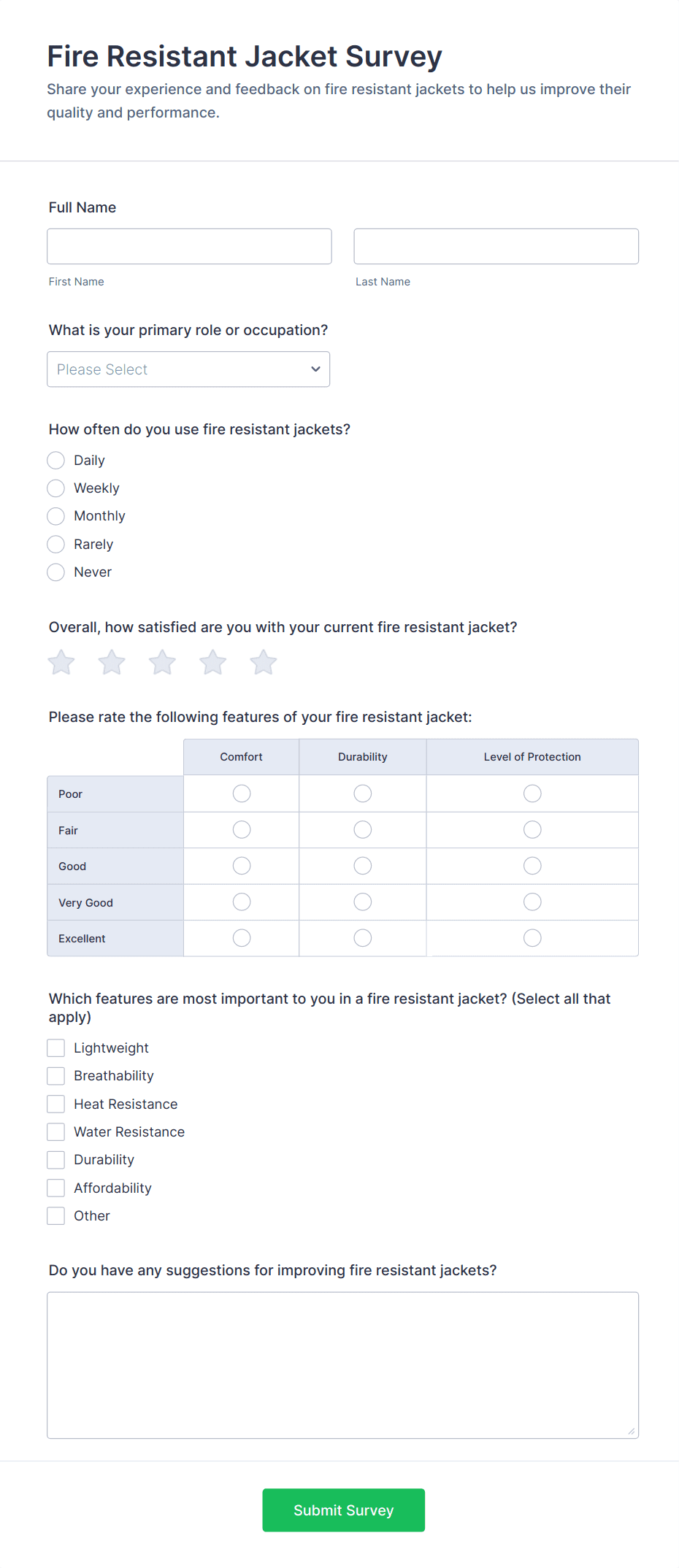 For employee surveys, consider adding anonymity options; for customer surveys, include contact fields if follow-up is needed.