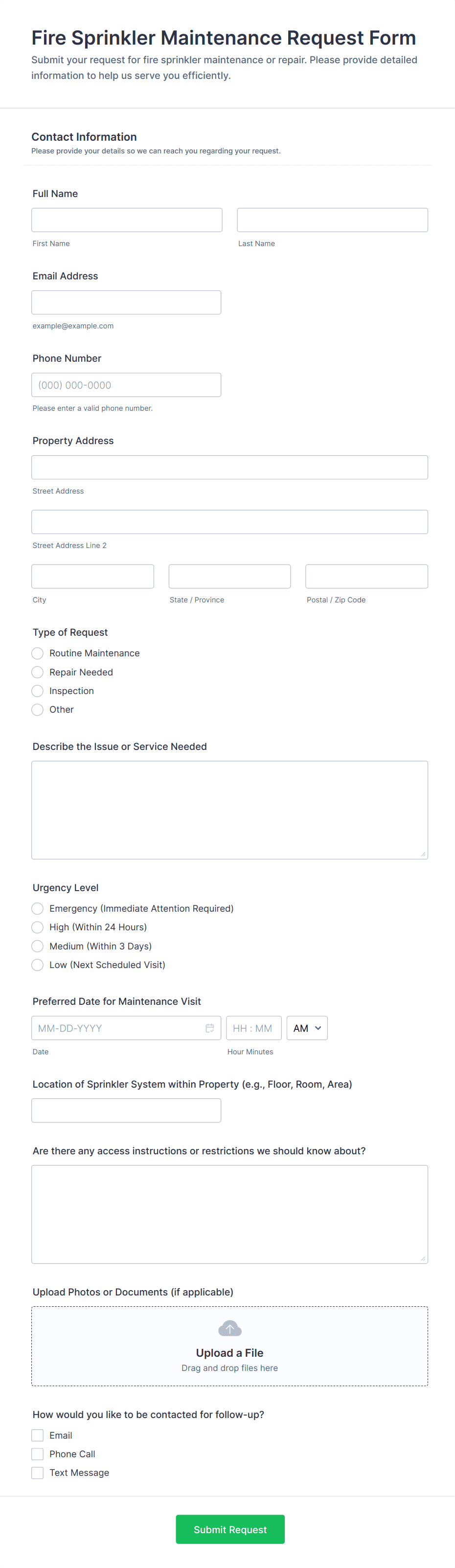 A maintenance request form is used by both property owners and building managers to identify maintenance issues and submit service requests. Easy to use. No coding.
