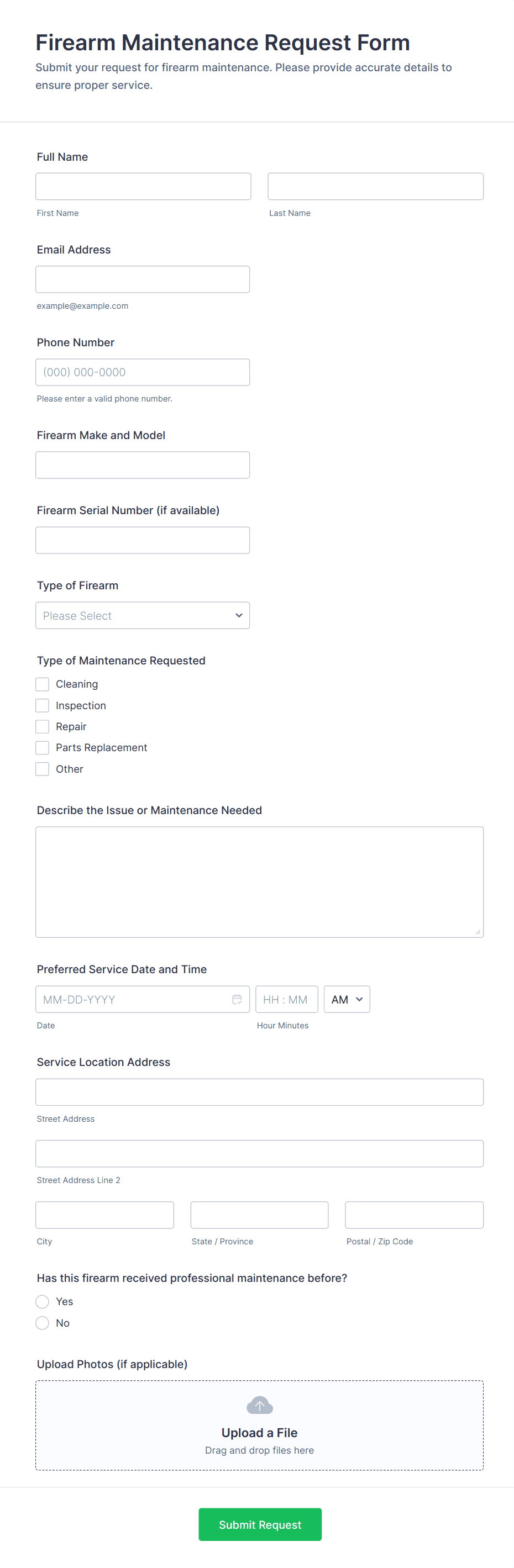 A maintenance request form is used by both property owners and building managers to identify maintenance issues and submit service requests. Easy to use. No coding.