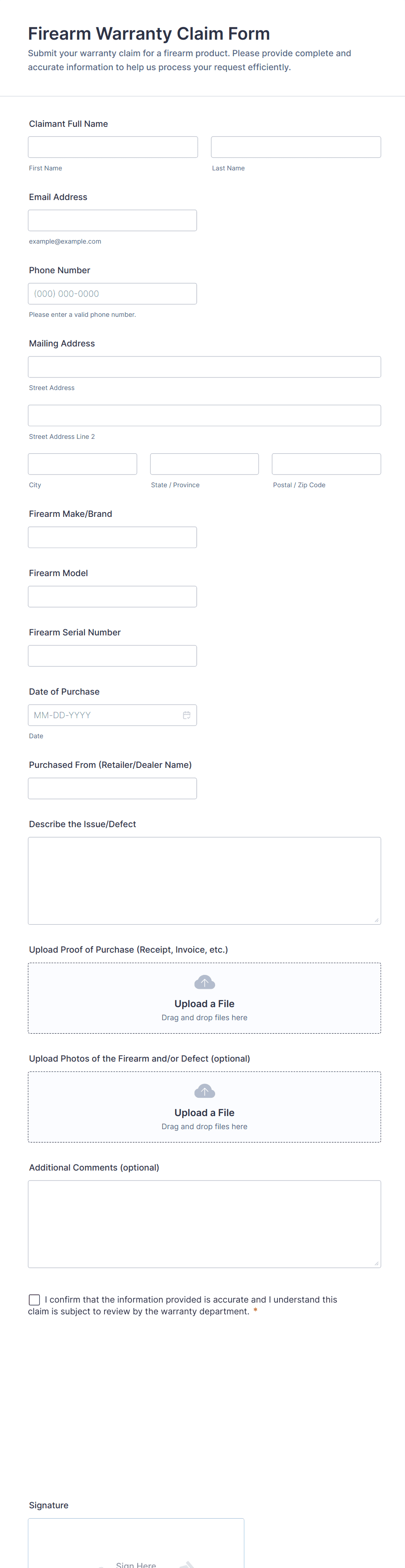 Warranty Claim Form