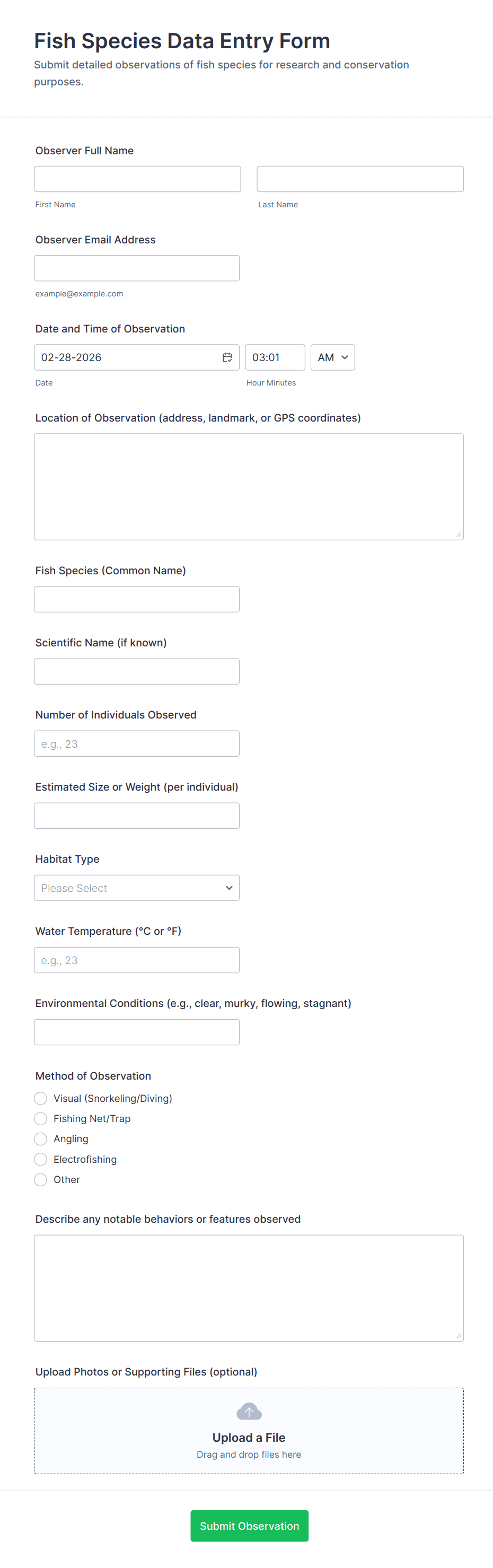 • For business reports: Include fields for dates, metrics, comments, and file uploads.