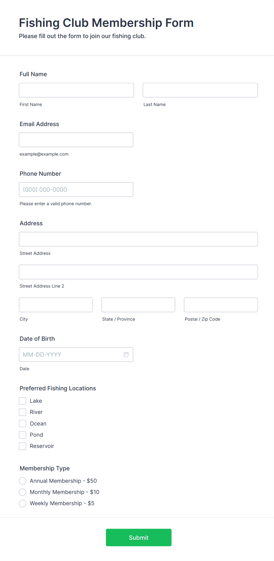Membership forms are used by clubs, gyms, professional associations, nonprofits, community groups, and any organization that manages a member base.