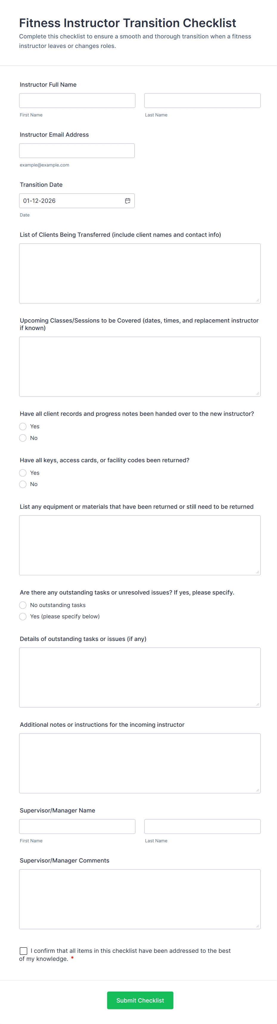 • Enable autoresponder emails to confirm receipt to the person completing the checklist.
