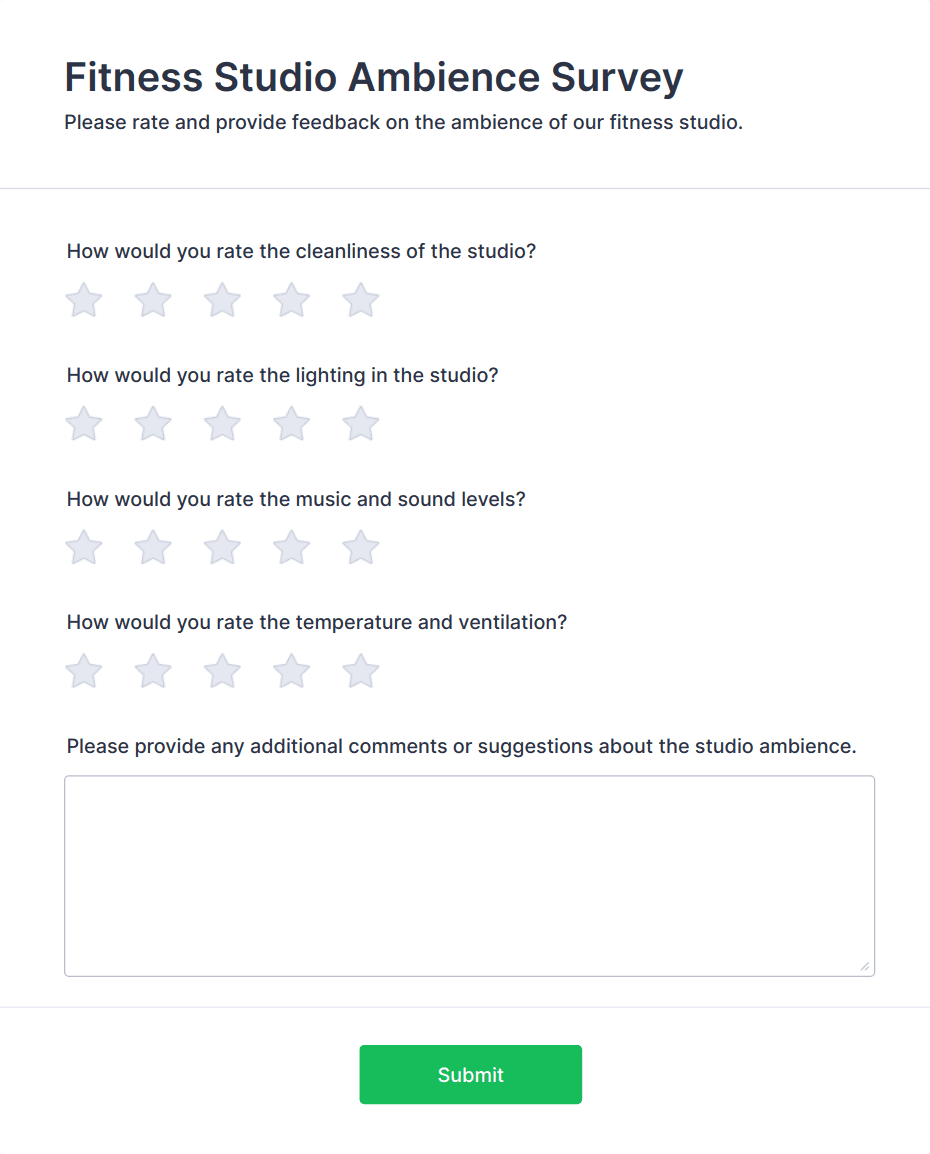 • For employee or patient surveys, add questions about environment, staff, and overall experience.