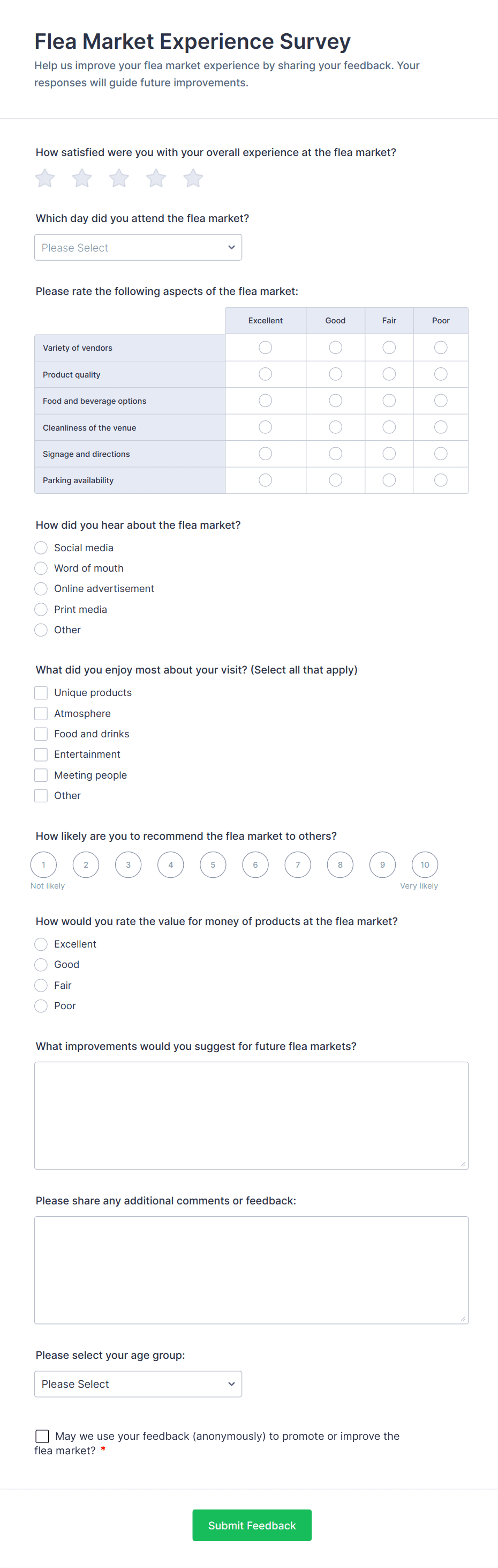 • Optional contact information fields if you wish to follow up with respondents