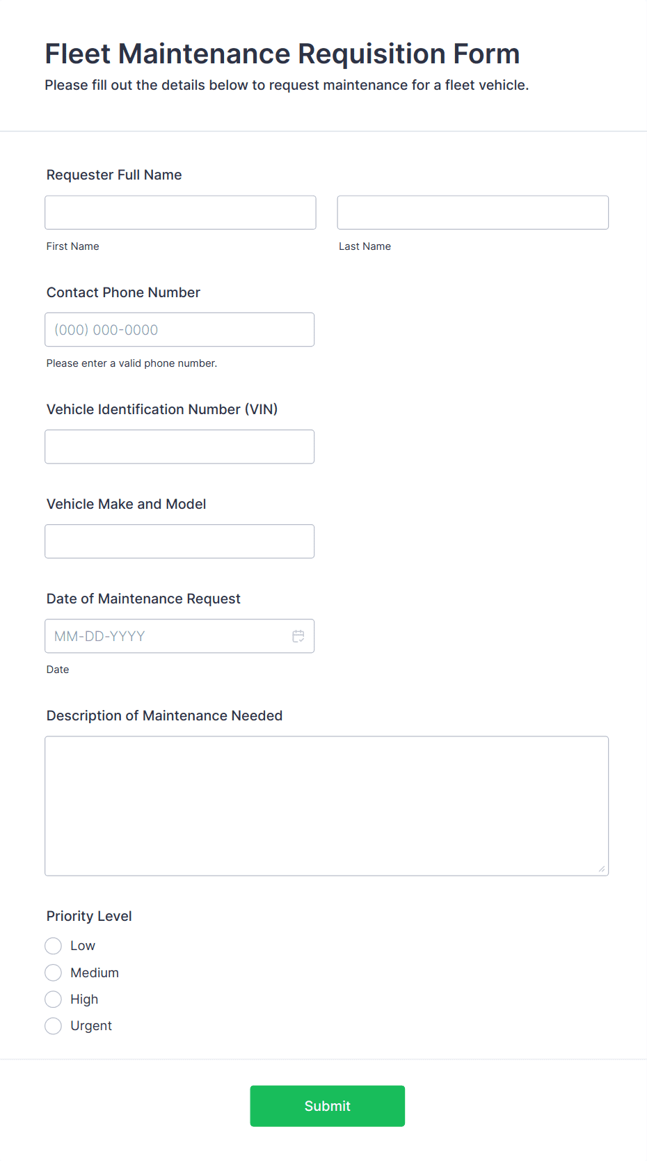 Vehicle Maintenance And Repair Request Form