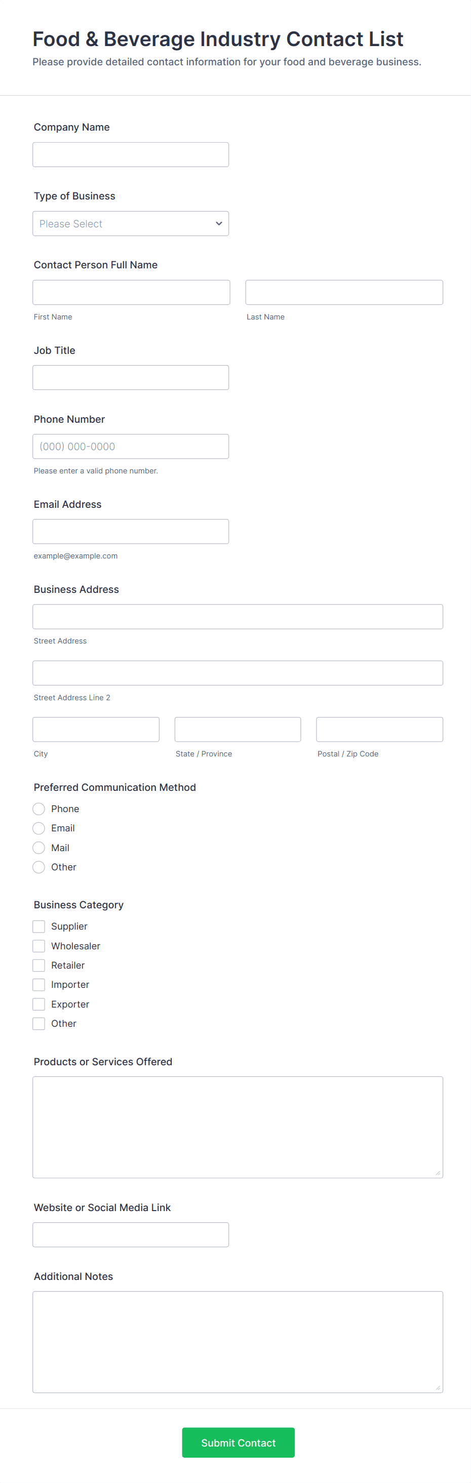 - For specialized use cases, include dropdowns (e.g., inquiry type), checkboxes (e.g., preferred contact method), or file upload fields (for attachments or screenshots).