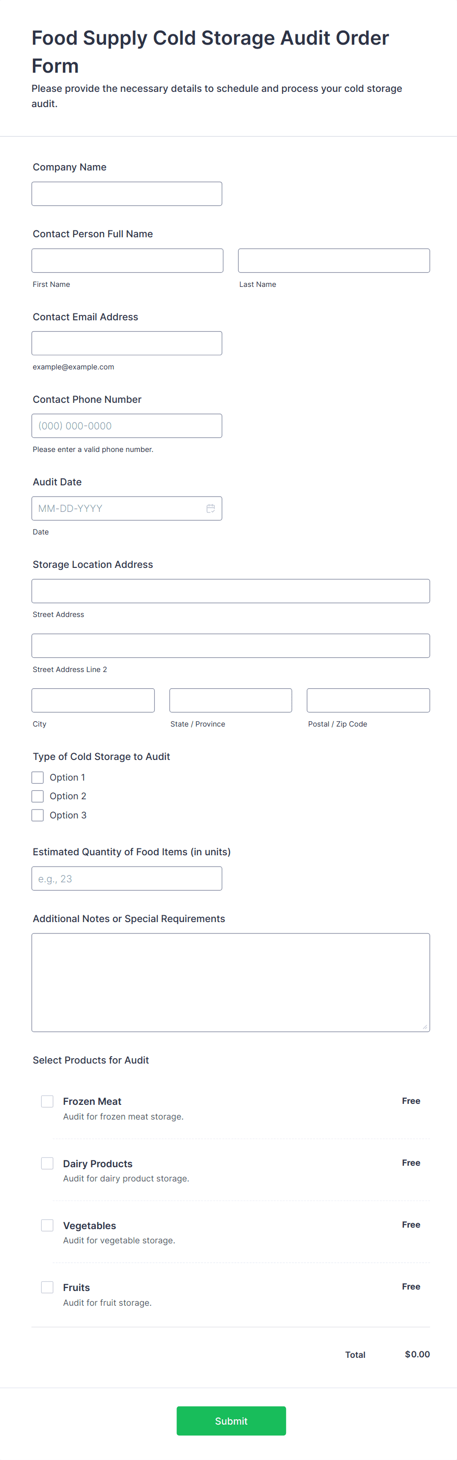 - Multiple choice or checkbox fields for compliance checks.
