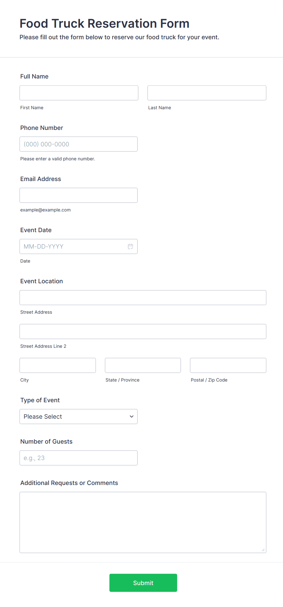 Event Registration Forms are digital tools designed to streamline the process of collecting attendee information for a wide variety of events, such as conferences, workshops, webinars, fundraisers, classes, and social gatherings. These forms allow organizers to gather essential details like participant names, contact information, payment preferences, dietary restrictions, and session selections. By using event registration forms, event planners can efficiently manage RSVPs, track attendance, and ensure a smooth check-in process on the day of the event. The flexibility of these forms makes them suitable for both small private gatherings and large-scale public events, adapting to the unique requirements of each occasion.