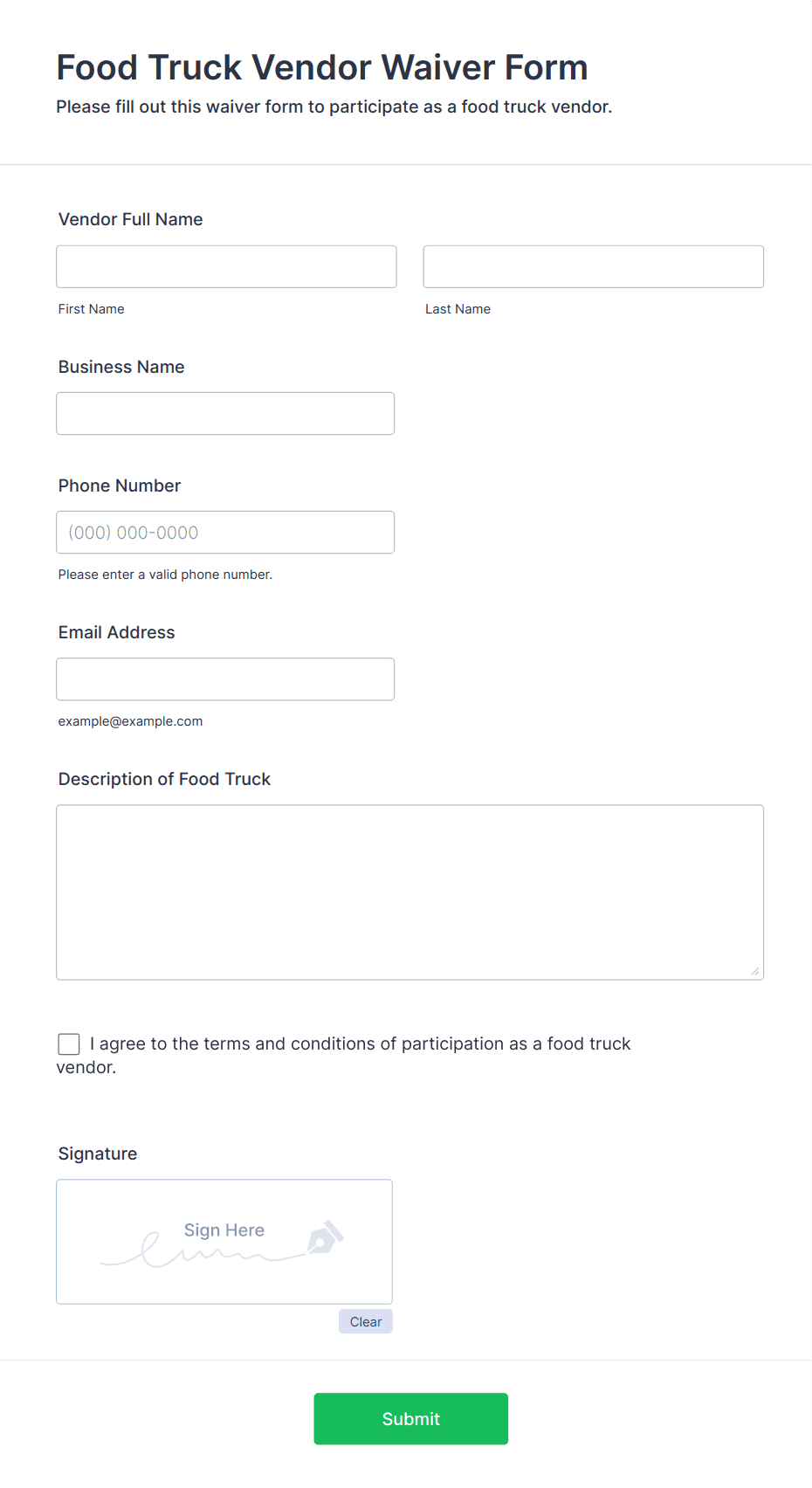 • Content and fields vary by use case: A gym waiver may require health disclosures, while a school field trip waiver may need emergency contact information.