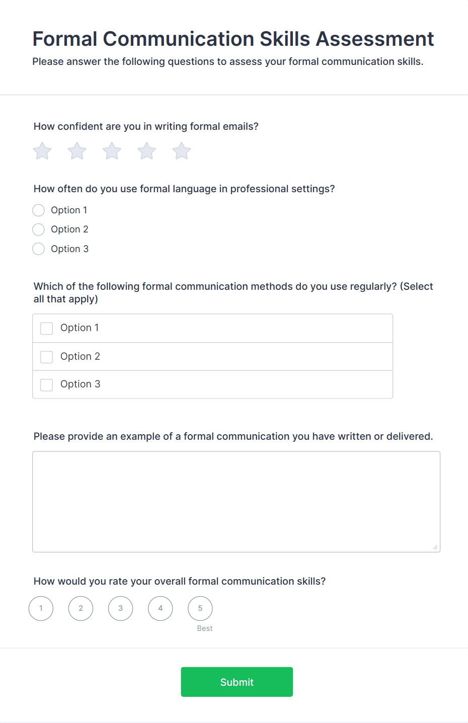 By following these steps, you can create a tailored assessment form that meets your specific needs, streamlines data collection, and provides actionable insights for your organization or project.